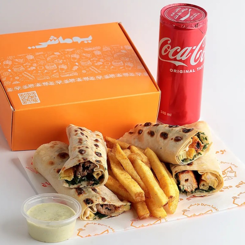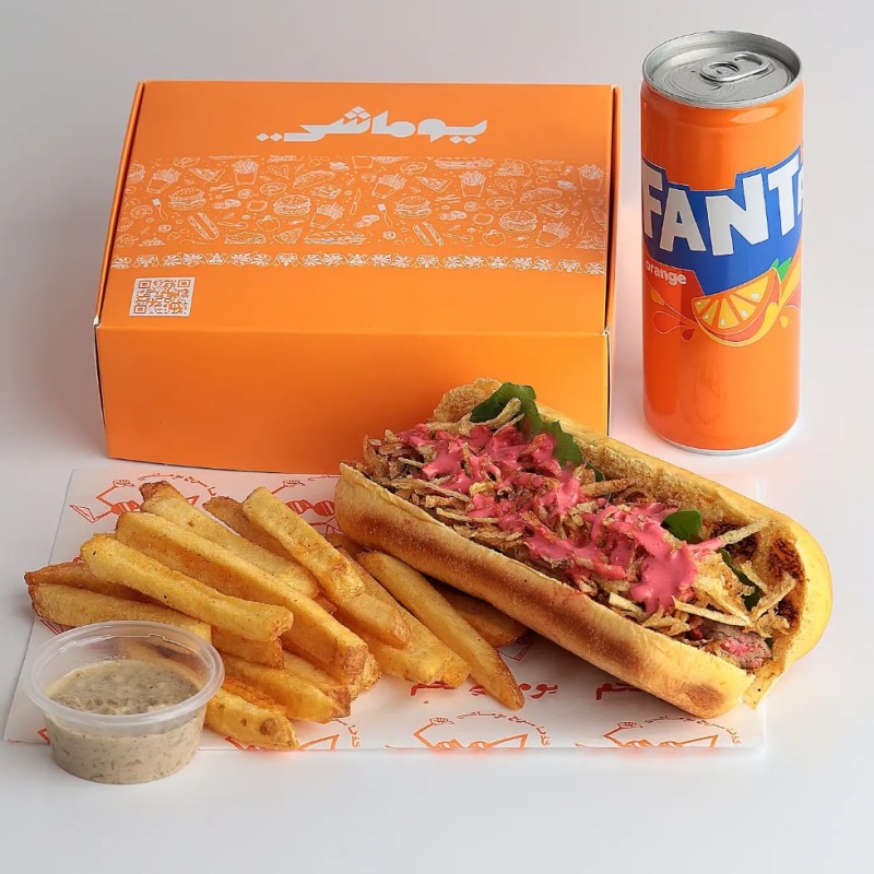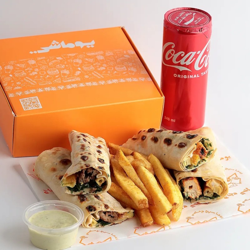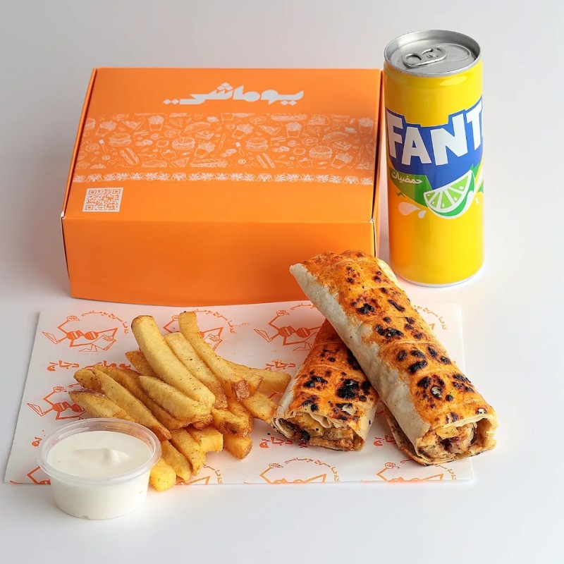 (675 سعرة حرارية)شاورما بطاطس +صوص +مشروب